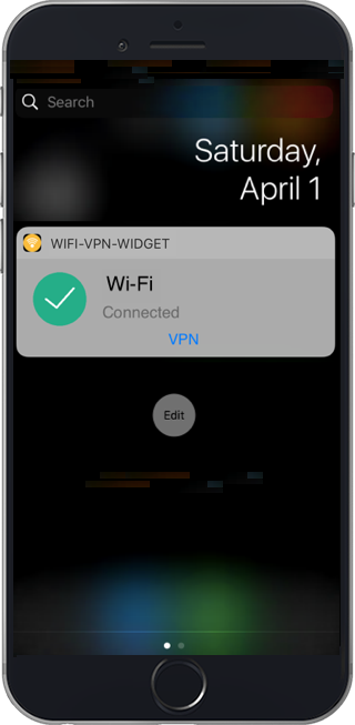 To add Wi-Fi VPN Widget to your Today Notification screen, Once the App is installed, you will need to click on Edit at the bottom of the Today notifications page, then click on the + symbol to add Wi-Fi VPN Widget.